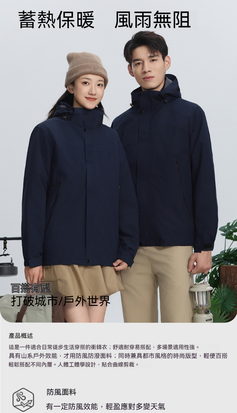 加棉加厚防風防雨三合一衝鋒衣|保暖 × 防風 × 防潑水 × 多場景穿搭