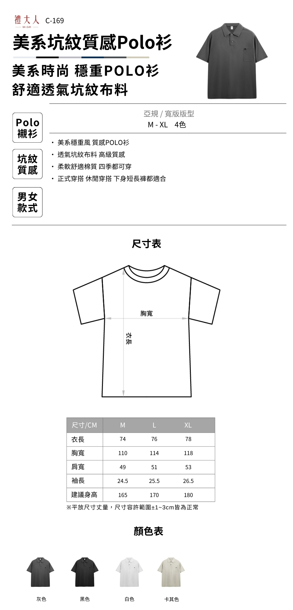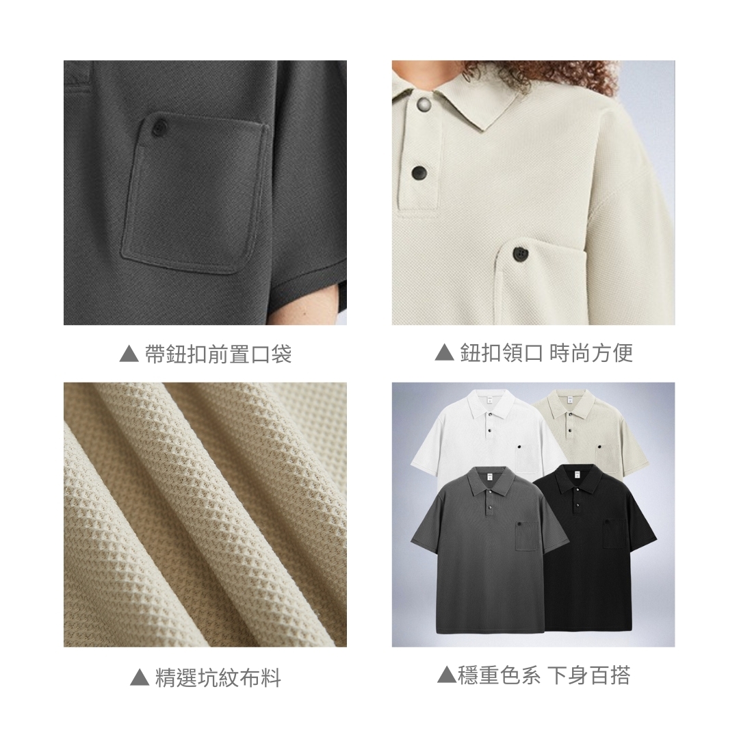 ※美系時尚 穩重POLO衫 舒適透氣坑紋布料
