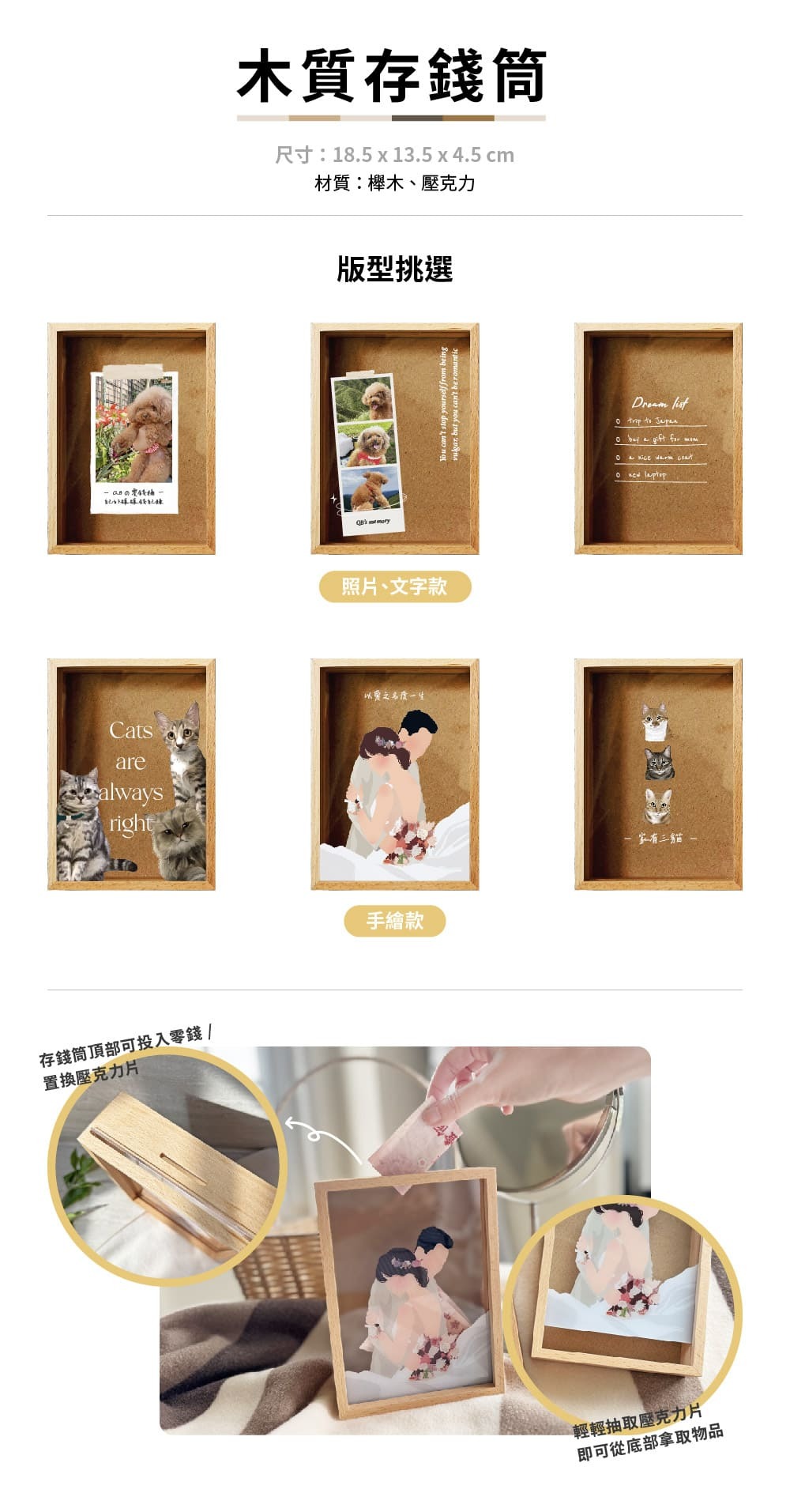 🔅 壓克力板推動,存錢筒可重複使用,輕鬆取出零錢!