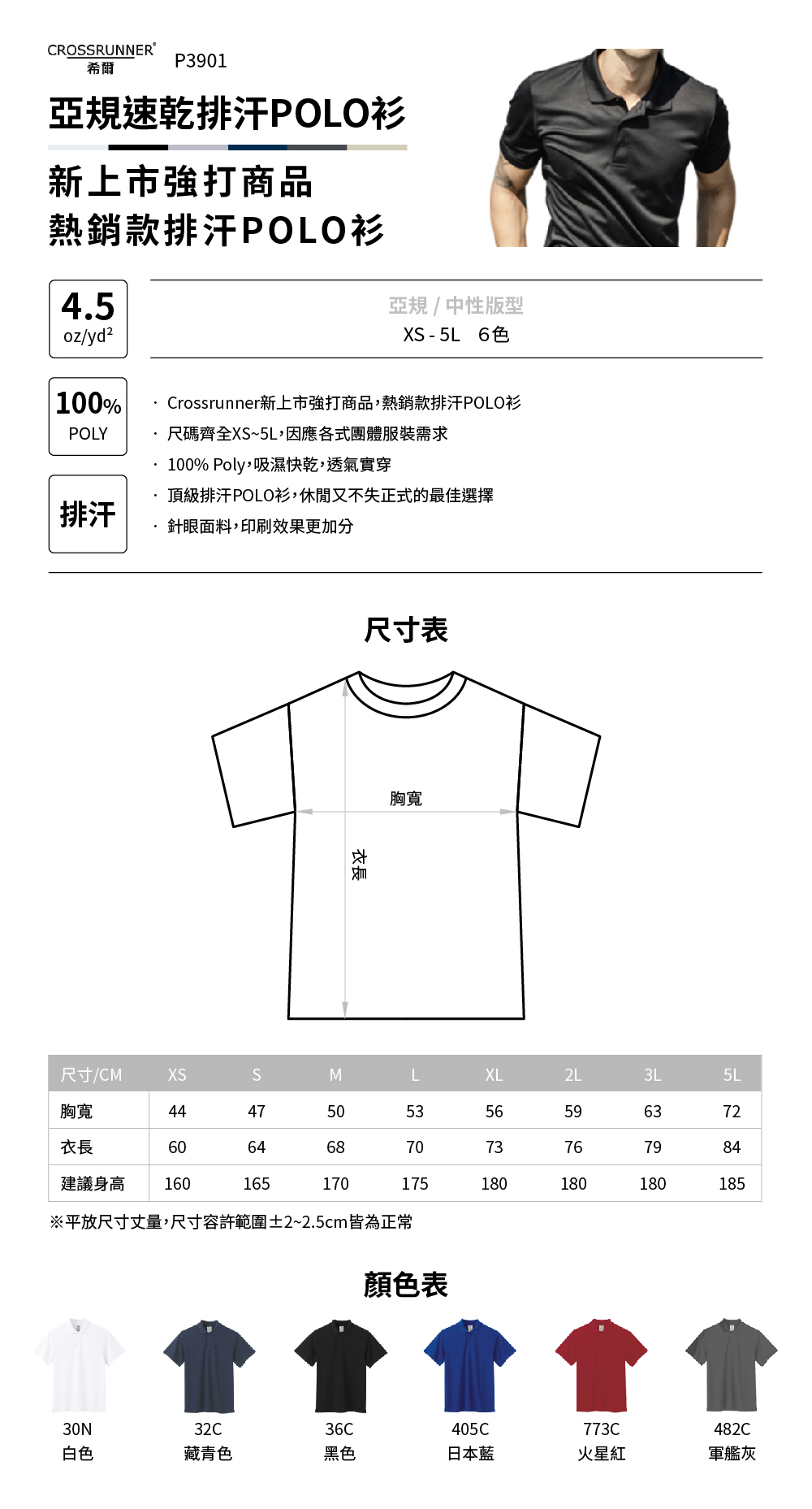 ▲ 100% Poly,吸濕快乾,透氣實穿