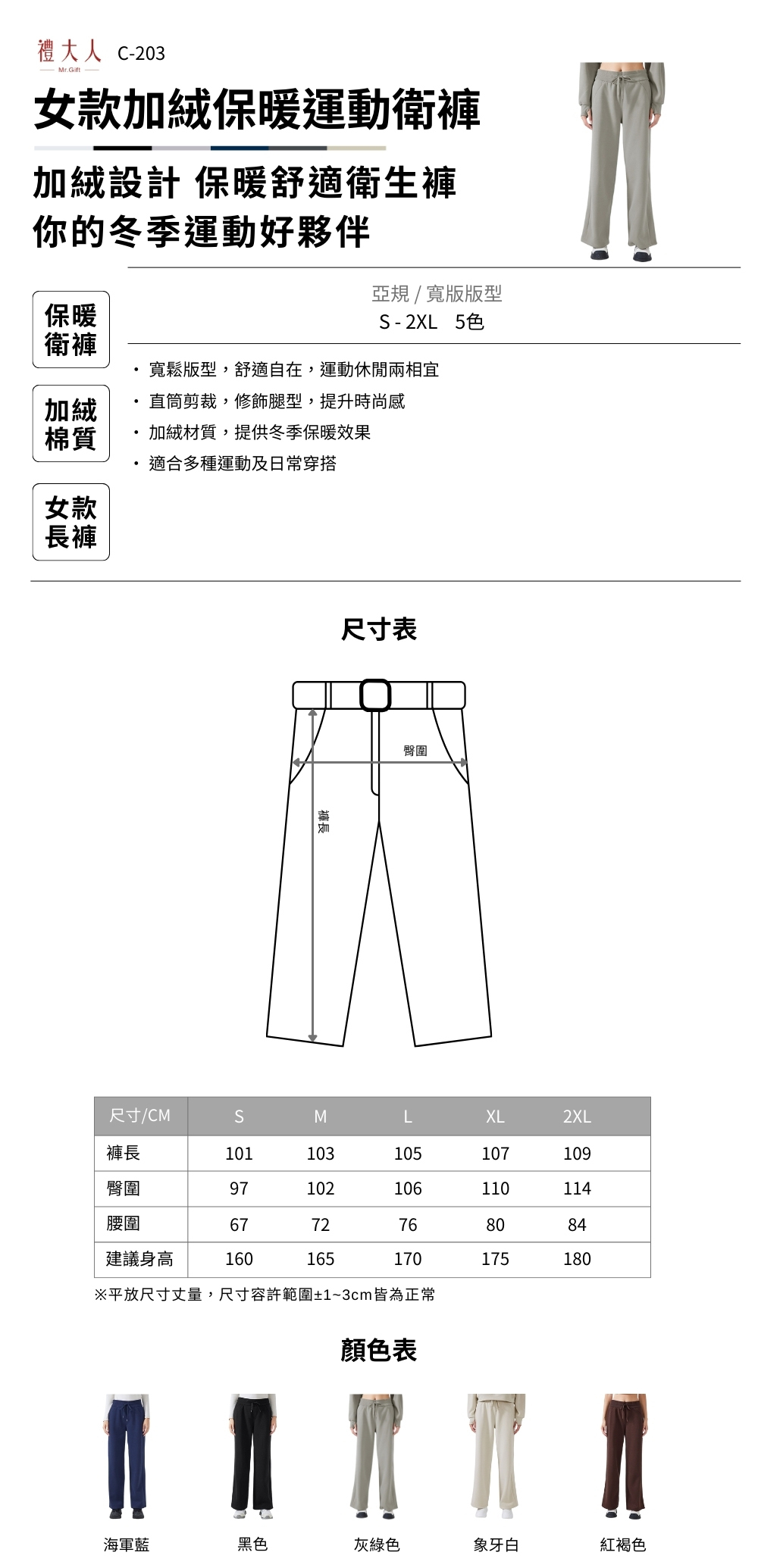 • 加絨材質,提供冬季保暖效果