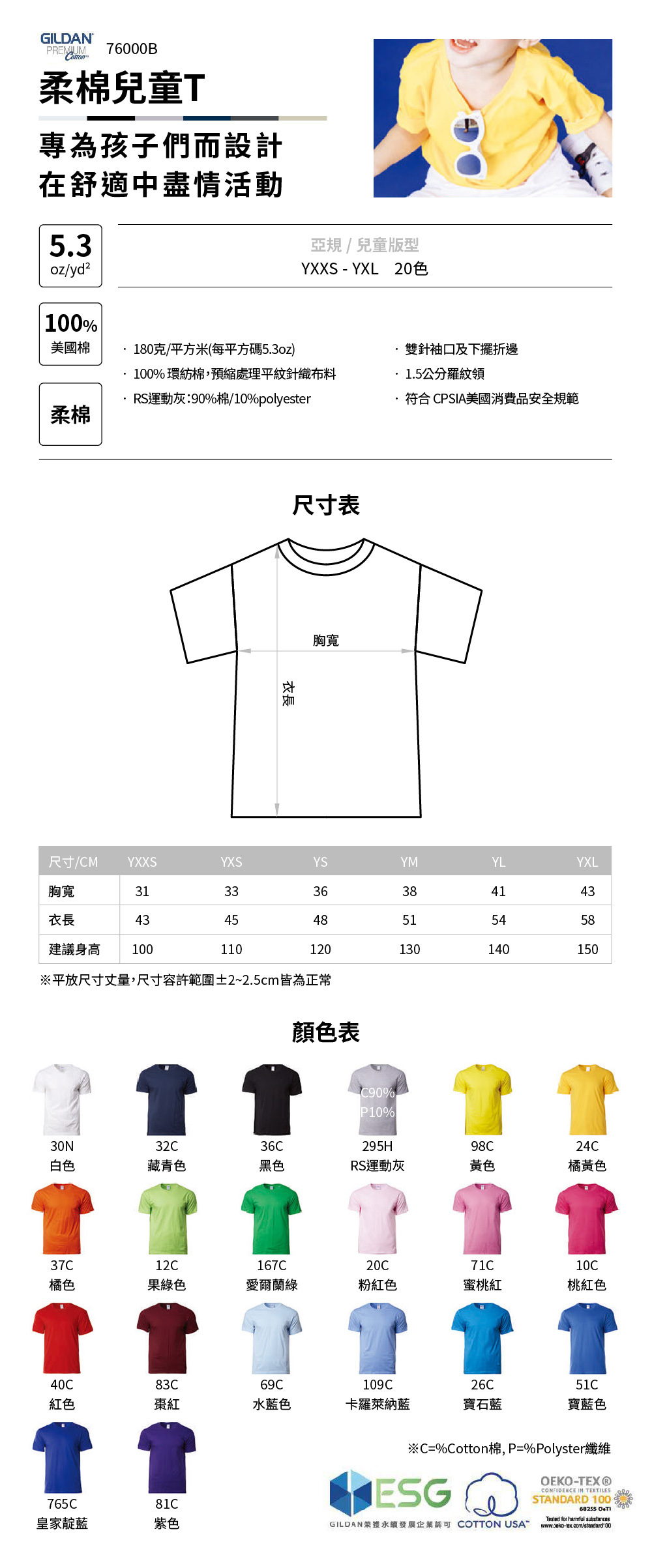 ▲ 100% 環紡棉,預縮處理平紋針織布料