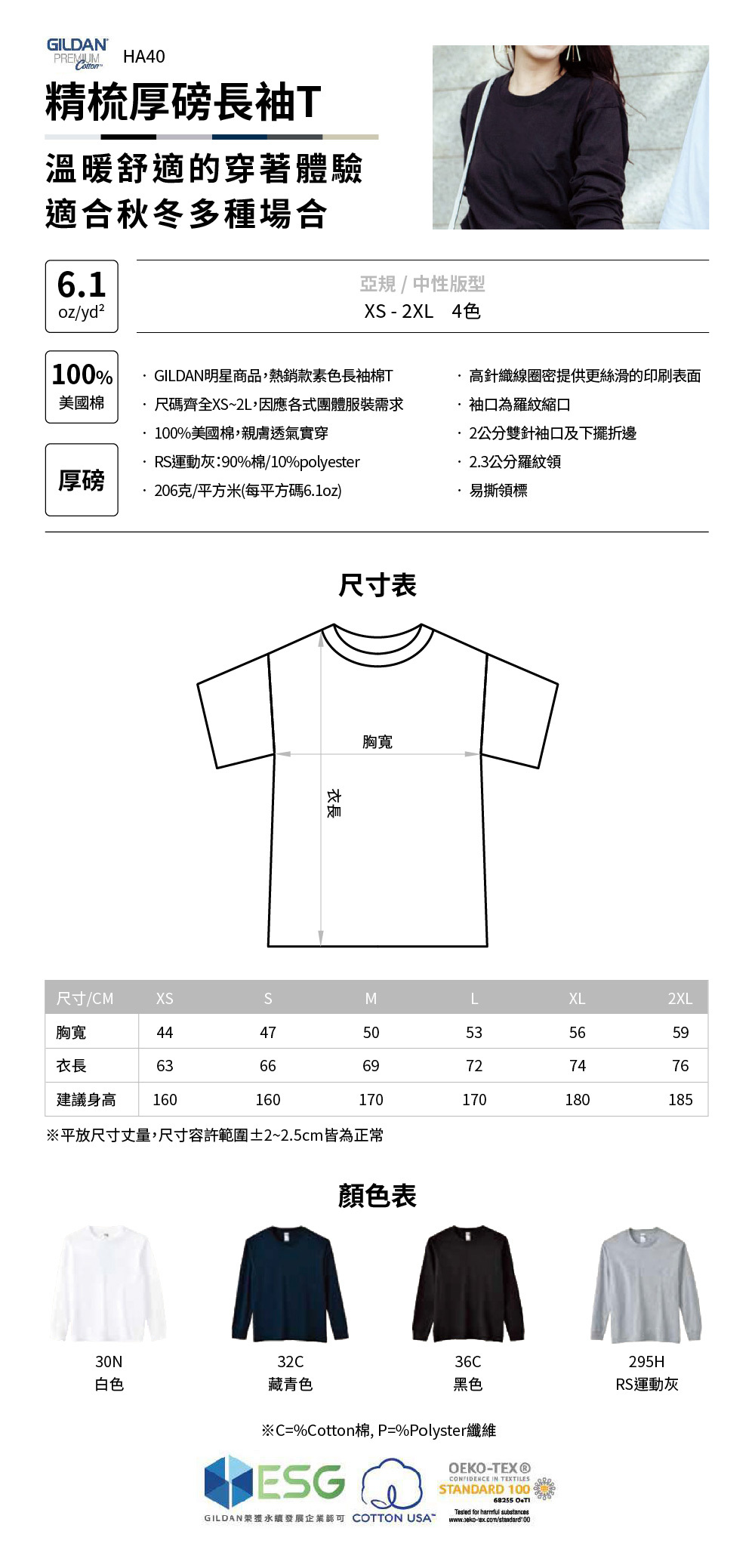 ◎ 另有76400亞規柔棉長袖T恤可供選擇