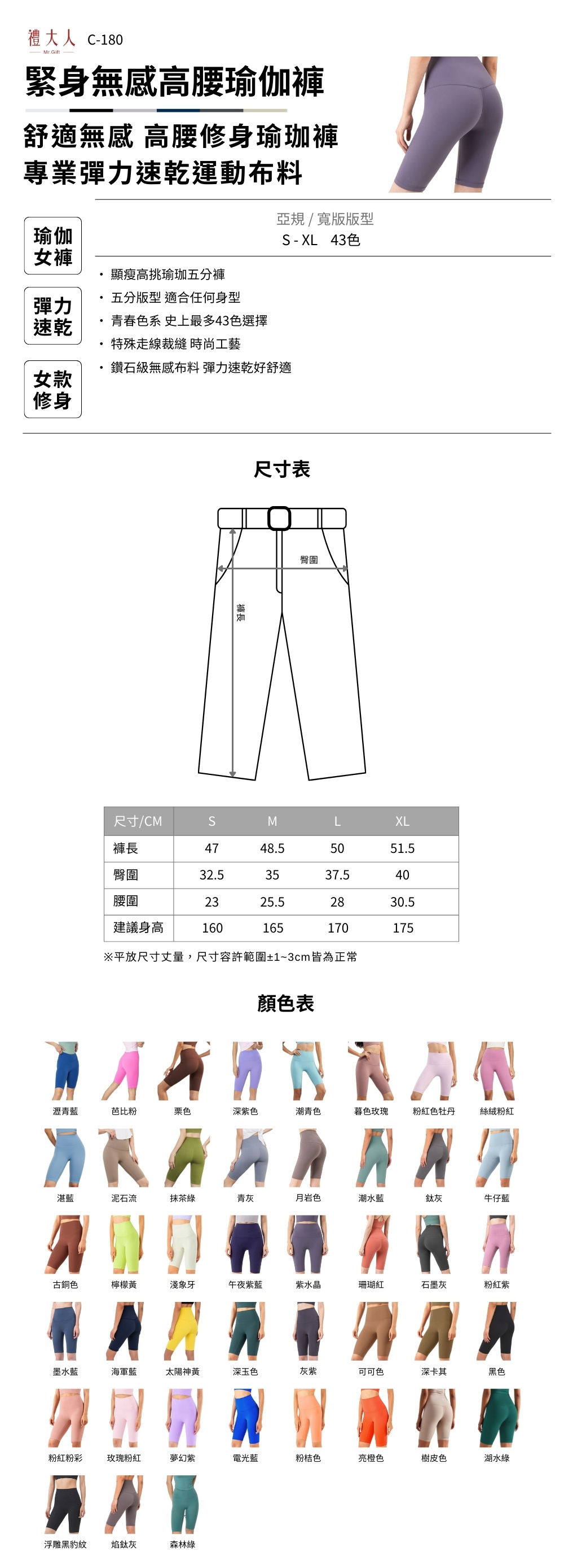 • 顯瘦高挑瑜珈五分褲