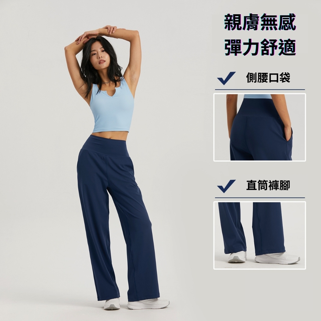 ※垂直寬鬆運動時尚寬褲 高彈力輕盈舒適布料