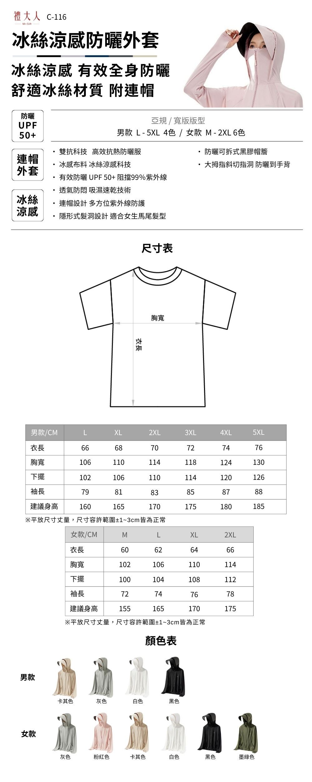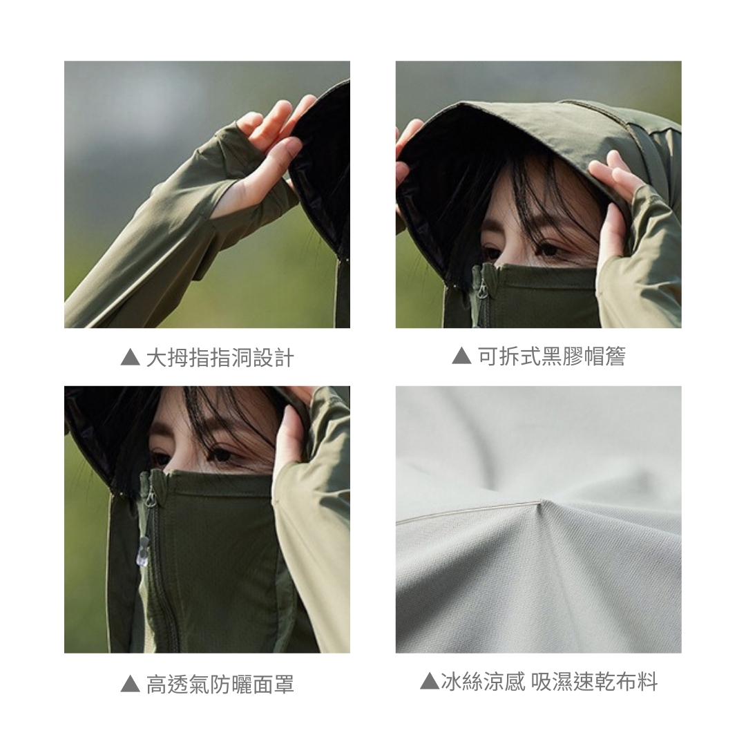 ※冰絲涼感 有效全身防曬 舒適冰絲材質 附連帽