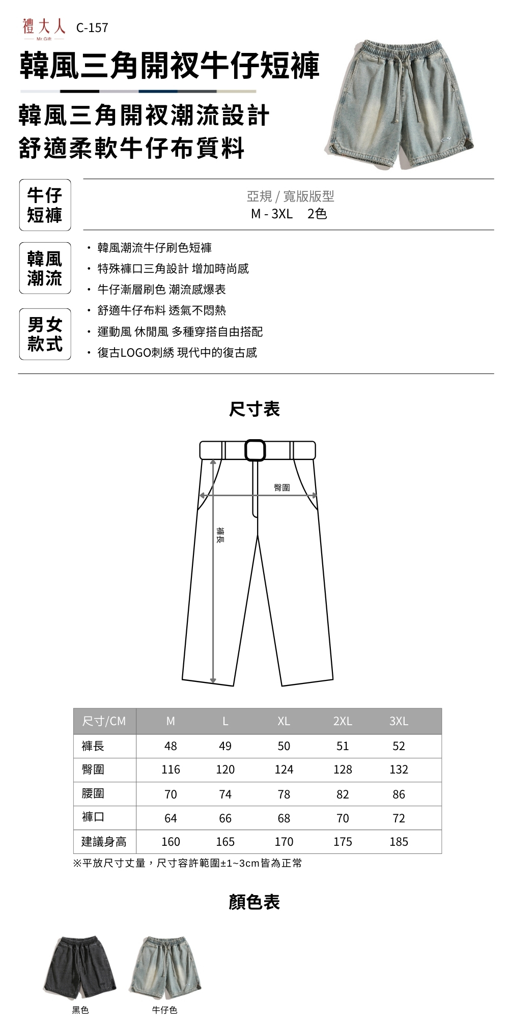 ※韓風三角開衩潮流設計 舒適柔軟牛仔布質料