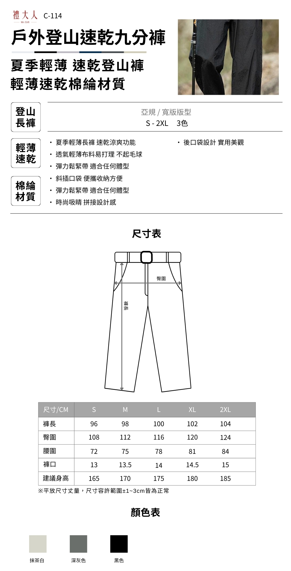 ※夏季輕薄 速乾登山褲 輕薄速乾棉綸材質