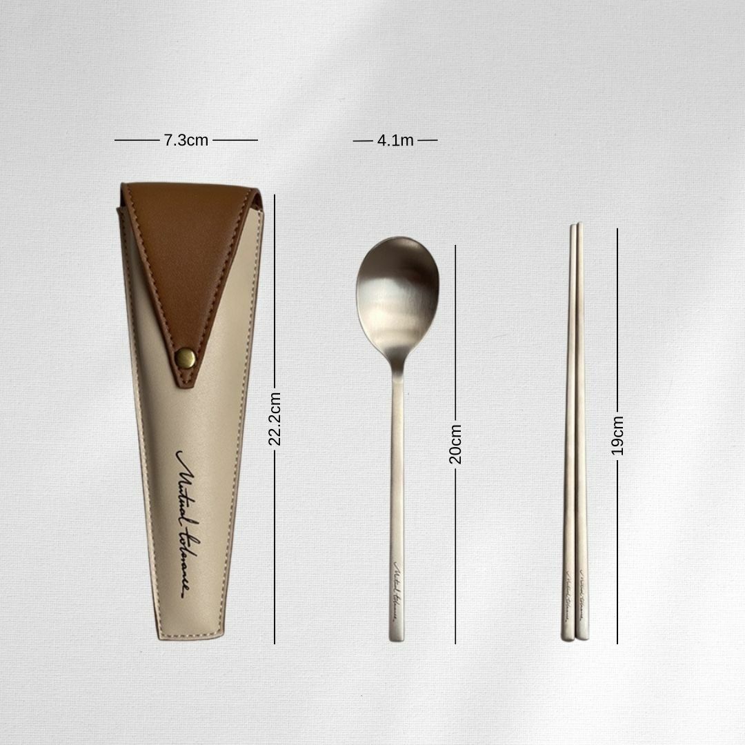 ‧樣式:質感攜帶餐具組(湯匙筷子皮革袋三件組)