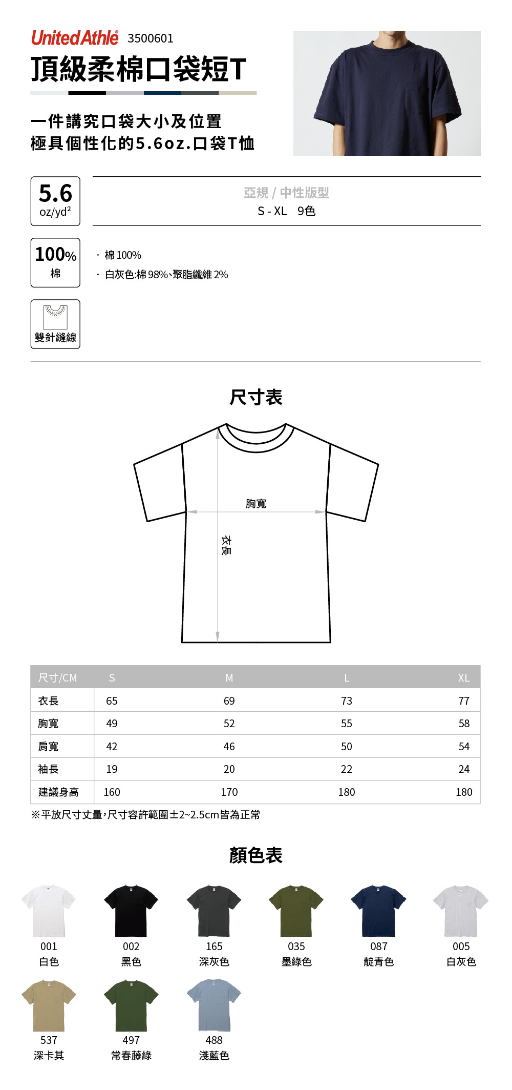 ●白灰色:棉 98%、聚脂纖維 2%