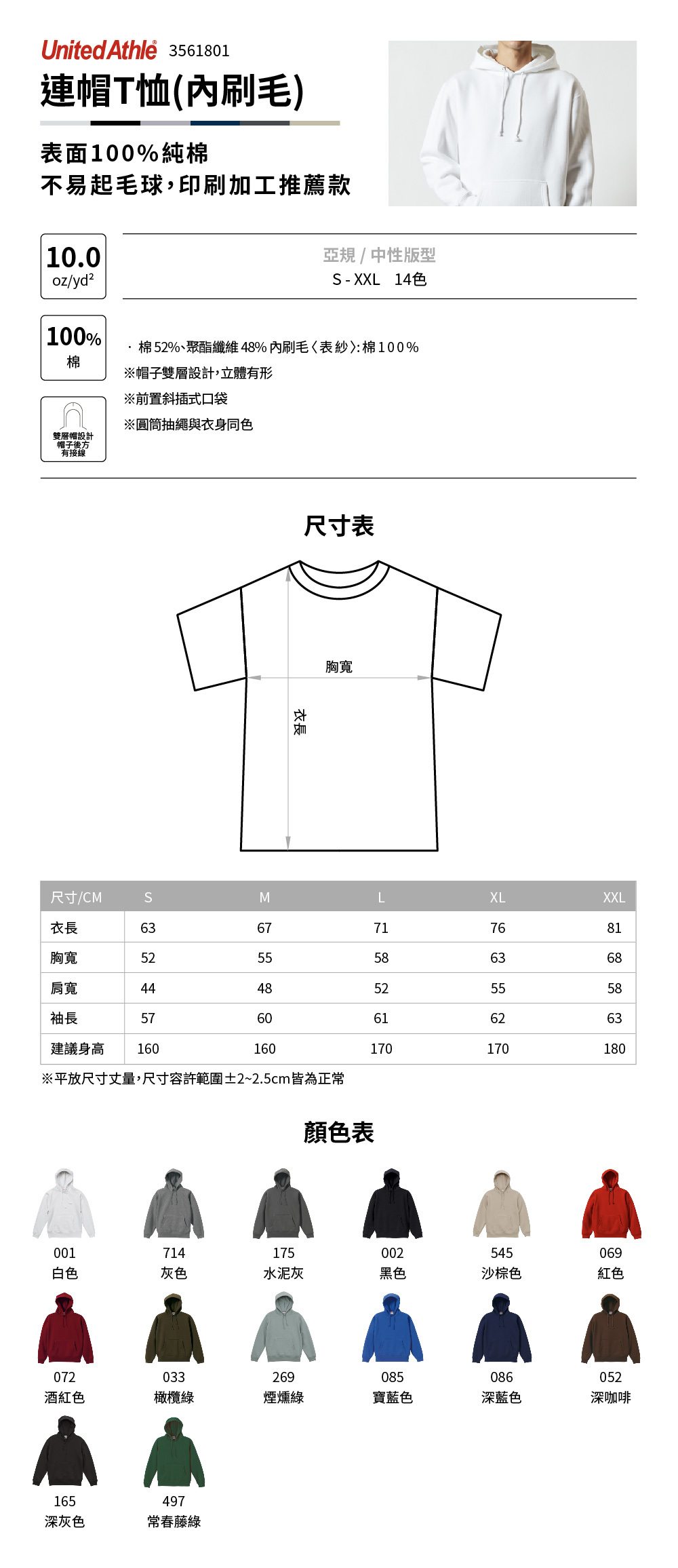 ● 棉52%、聚酯纖維 48% 內刷毛 〈表紗〉: 棉100%