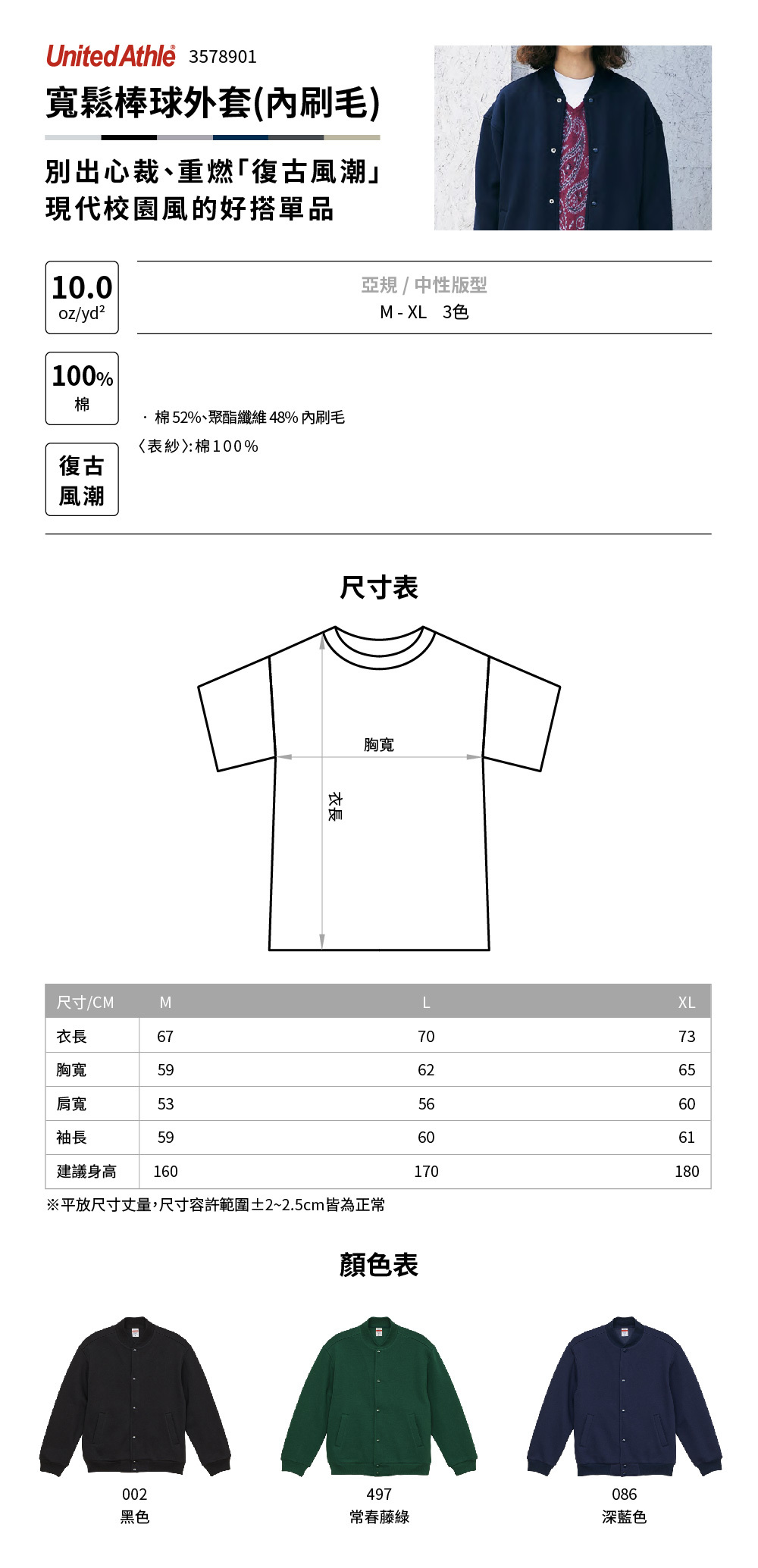 ● 棉 52%、聚酯纖維 48% 內刷毛