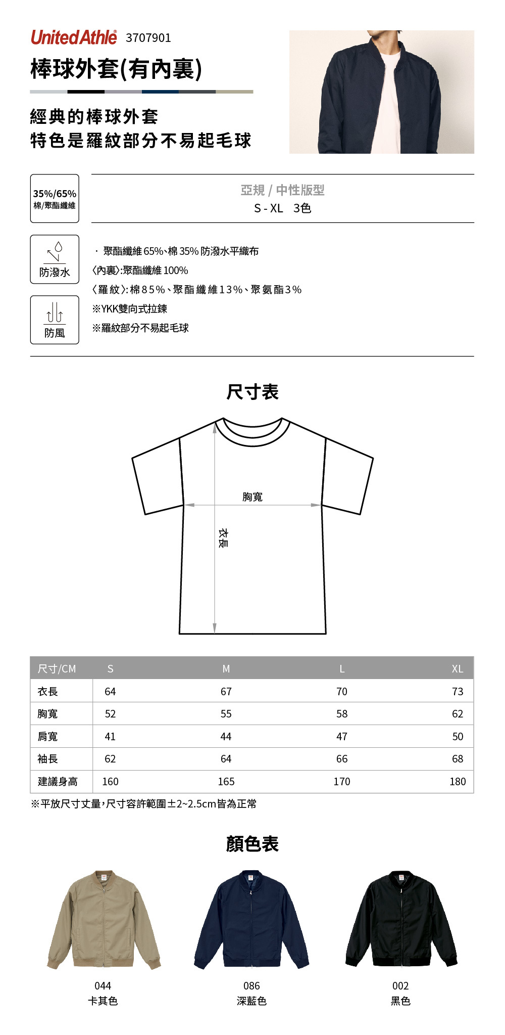 ● 聚酯纖維 65%、棉 35% 防潑水平織布