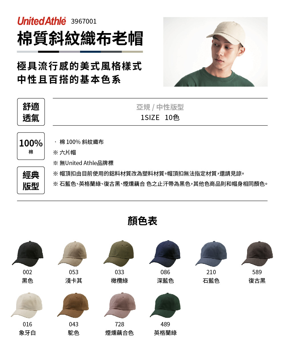 ※ 石藍色、英格蘭綠、復古黑、煙燻藕合 色之止汗帶為黑色,其他色商品則和帽身相同顏色。
