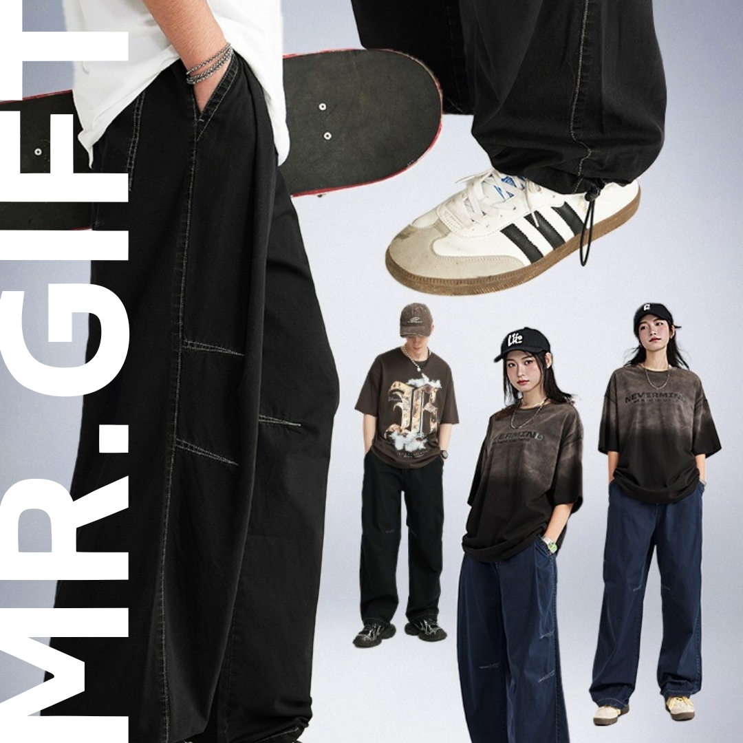 ※素色寬鬆潮流直筒褲 高品質水洗棉褲